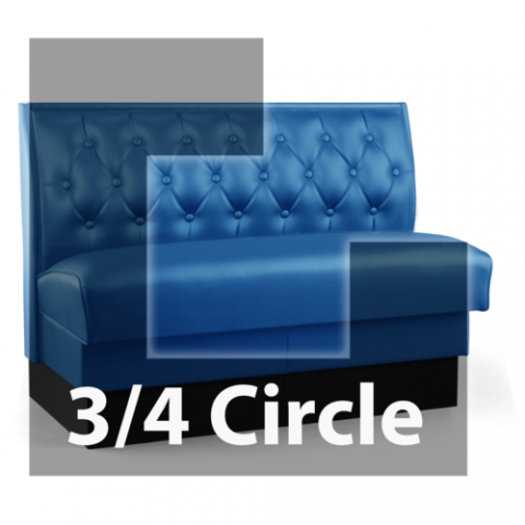 Custom Booth, three-quarter circle banquette with 3 corners, 48" x 90" x 90" x 48"L x 36"H, upholstered foam sewn button tufted back with lumbar support, upholstered seat, unfinished outside back, grade 2 uph