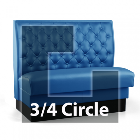 Custom Booth, three-quarter circle banquette with 3 corners, 48" x 90" x 90" x 48"L x 42"H, upholstered foam sewn button tufted back with lumbar support, upholstered seat, unfinished outside back, grade 2 uph