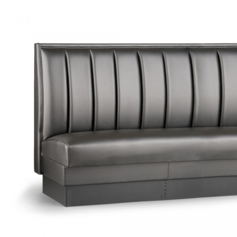 Custom Booth, banquette, 42"H, upholstered foam vertical channel (5" to 16" spacing) back with lumbar support, upholstered seat, unfinished outside back, grade 2 uph. (priced per foot)