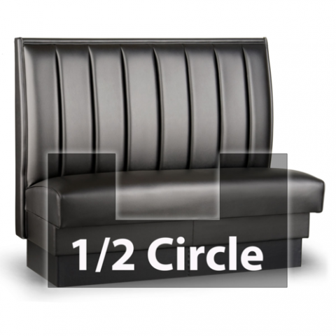 Custom Booth, half-circle banquette with 2 corners, 48" x 90" x 48"L, 48"H, upholstered foam vertical channel (5" to 16" spacing) back with lumbar support, upholstered seat, unfinished outside back, grade 3 uph