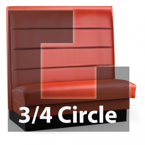 Custom Booth, three-quarter circle banquette with 3 corners, 48" x 90" x 90" x 48"L x 48"H, upholstered foam horizontal channel (6" to 16" spacing) back with lumbar support, upholstered seat, unfinished outside back, grade 1 uph/COM