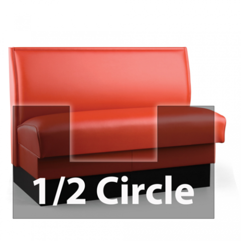 Custom Booth, half-circle banquette with 2 corners, 48" x 90" x 48"L, 36"H, upholstered foam plain back with lumbar support, upholstered seat, unfinished outside back, grade 1 uph/COM