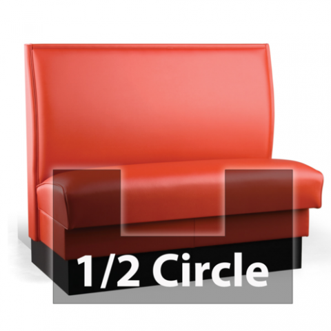Custom Booth, half-circle banquette with 2 corners, 48" x 90" x 48"L, 42"H, upholstered foam plain back with lumbar support, upholstered seat, unfinished outside back, grade 3 uph