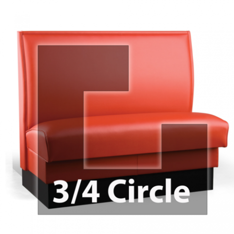 Custom Booth, three-quarter circle banquette with 3 corners, 48" x 90" x 90" x 48"L x 42"H, upholstered foam plain back with lumbar support, upholstered seat, unfinished outside back, grade 1 uph/COM