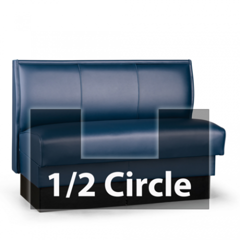 Custom Booth, half-circle banquette with 2 corners, 48" x 90" x 48"L, 36"H, upholstered foam stitched-welt panel (10" to 16" spacing) back with lumbar support, upholstered seat, unfinished outside back, grade 1 uph/COM