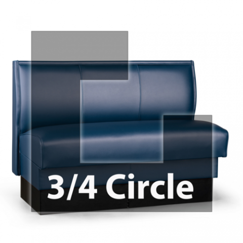 Custom Booth, three-quarter circle banquette with 3 corners, 48" x 90" x 90" x 48"L x 36"H, upholstered foam stitched-welt panel (10" to 16" spacing) back with lumbar support, upholstered seat, unfinished outside back, grade 3 uph