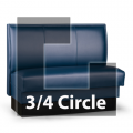 Custom Booth, three-quarter circle banquette with 3 corners, 48" x 90" x 90" x 48"L x 42"H, upholstered foam stitched-welt panel (10" to 16" spacing) back with lumbar support, upholstered seat, unfinished outside back, grade 3 uph