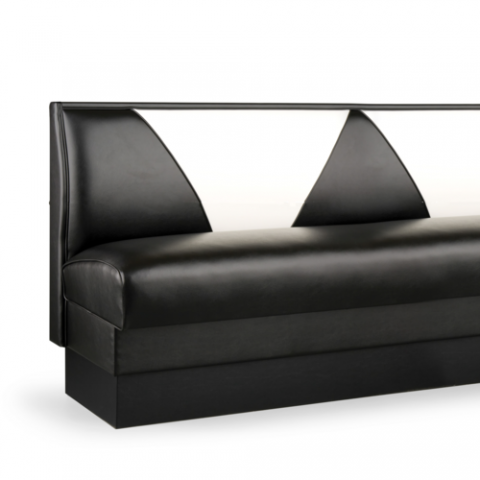 Custom Booth, banquette, 42"H, upholstered foam v-back with lumbar support, upholstered seat, unfinished outside back, grade 1 uph/COM (priced per foot)