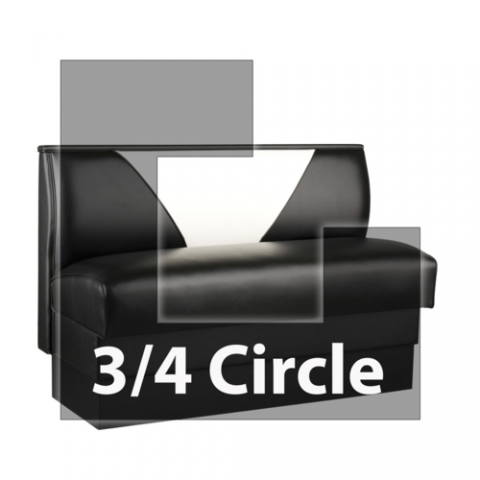 Custom Booth, three-quarter circle banquette with 3 corners, 48" x 90" x 90" x 48"L x 36"H, upholstered foam v-back with lumbar support, upholstered seat, unfinished outside back, grade 3 uph