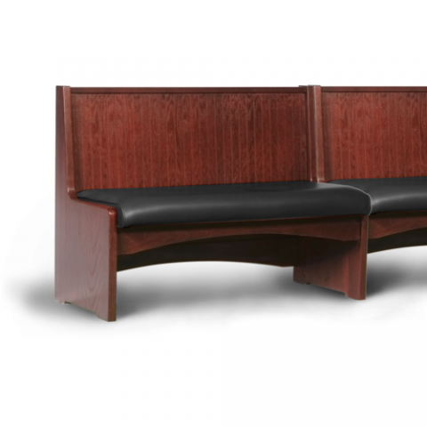 Custom Booth, banquette, 36"H, wood frame, open bottom, vertical bead-board back, solid wood side, wide top cap, removable padded seat, unfinished outside back, grade 2 uph (priced per foot)