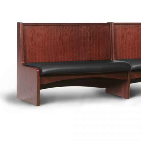 Custom Booth, banquette, 42"H, wood frame, open bottom, vertical bead-board back, solid wood side, wide top cap, removable padded seat, unfinished outside back, grade 3 uph. (priced per foot)