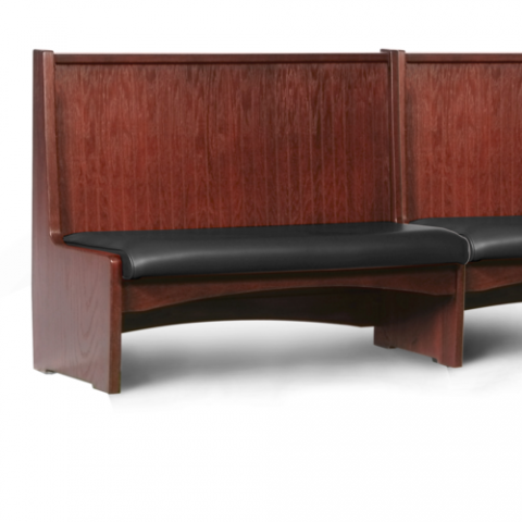 Custom Booth, banquette, 48"H, wood frame, open bottom, vertical bead-board back, solid wood side, wide top cap, removable padded seat, unfinished outside back, grade 1 uph/COM (priced per foot)