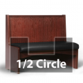 Custom Booth, half-circle banquette with 2 corners, 48" x 90" x 48"L, 42"H, wood frame, open bottom, vertical bead-board back, solid wood side, wide top cap, removable padded seat, unfinished outside back, grade 3 uph