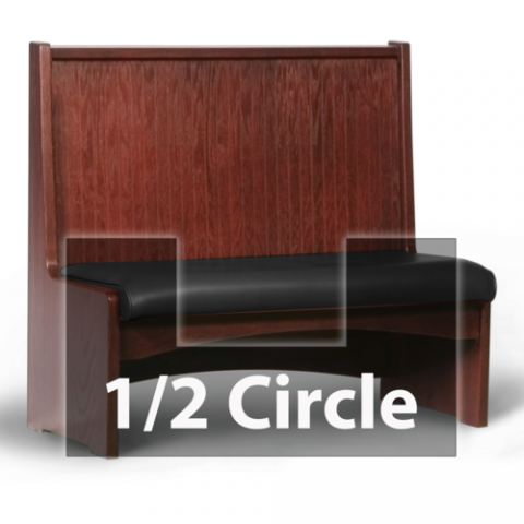 Custom Booth, half-circle banquette with 2 corners, 48" x 90" x 48"L, 48"H, wood frame, open bottom, vertical bead-board back, solid wood side, wide top cap, removable padded seat, unfinished outside back, grade 3 uph