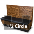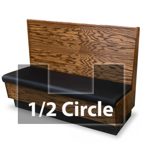 Custom Booth, half-circle banquette with 2 corners, 48" x 90" x 48"L, 42"H, wood plank frame, wooden back, removable padded seats, unfinished outside back, grade 3 uph