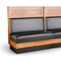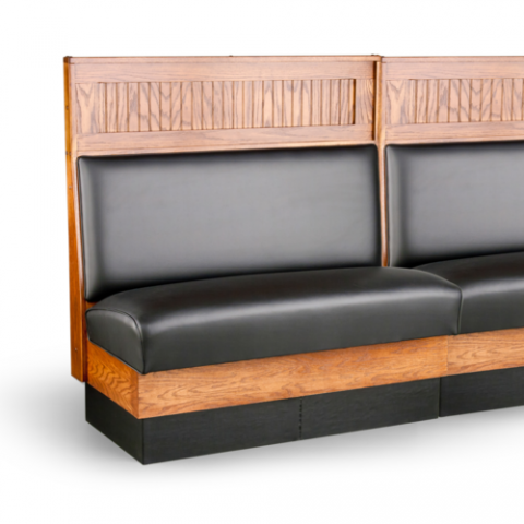 Custom Booth, banquette, 48"H, wooden frame, upholstered foam plain back, privacy panel option, wood caps, removable sinuous spring seat, unfinished outside back, grade 1 uph/COM (priced per foot)