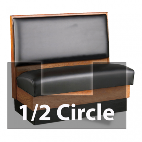 Custom Booth, half-circle banquette with 2 corners, 48" x 90" x 48"L, 42"H, wooden frame, upholstered foam plain back, privacy panel option, wood caps, removable sinuous spring seat, unfinished outside back, grade 3 uph