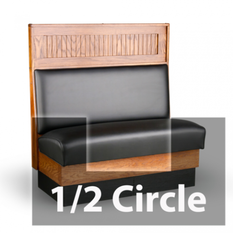Custom Booth, half-circle banquette with 2 corners, 48" x 90" x 48"L, 60"H, wooden frame, upholstered foam plain back, privacy panel option, wood caps, removable sinuous spring seat, unfinished outside back, grade 2 uph