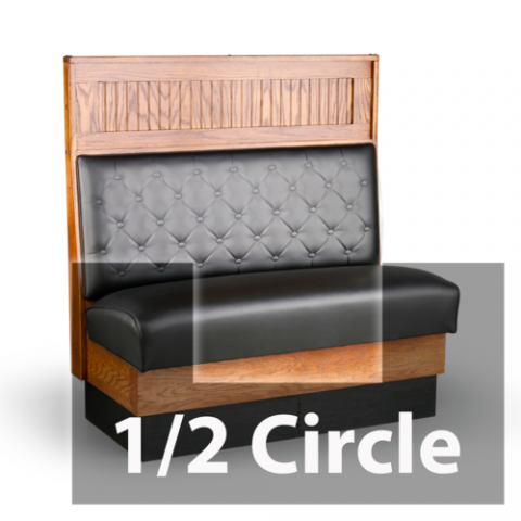 Custom Booth, half-circle banquette with 2 corners, 48" x 90" x 48"L, 48"H, wooden frame, upholstered foam sewn button tufted back, privacy panel option, wood caps, removable sinuous spring seat, unfinished outside back, grade 1 uph/COM