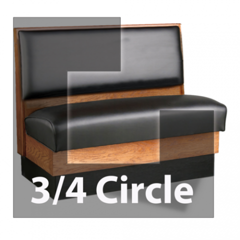 Custom Booth, three-quarter circle banquette with 3 corners, 48" x 90" x 90" x 48"L x 36"H, wooden frame, upholstered foam plain back, privacy panel option, wood caps, removable sinuous spring seat, unfinished outside back, grade 1 uph/COM