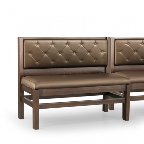 Custom Booth, banquette, 36"H, wood frame, floating padded sewn button tufted upholstered back, padded seat, unfinished outside back, grade 1 uph/COM. (priced per foot)