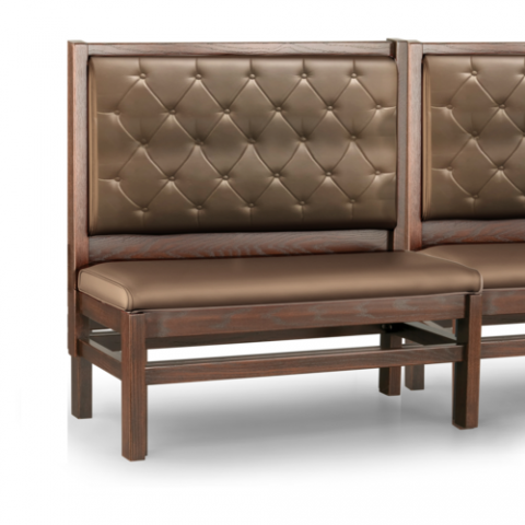Custom Booth, banquette, 48"H, wood frame, floating padded sewn button tufted upholstered back, padded seat, unfinished outside back, grade 1 uph/COM (priced per foot)