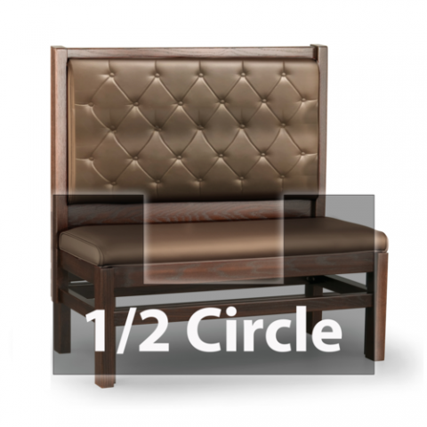 Custom Booth, half-circle banquette with 2 corners, 48" x 90" x 48"L, 48"H, wood frame, floating padded sewn button tufted upholstered back, padded seat, unfinished outside back, grade 2 uph