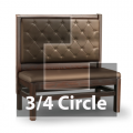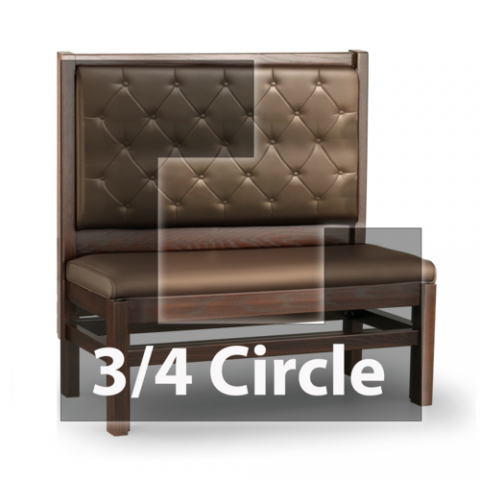 Custom Booth, three-quarter circle banquette with 3 corners, 48" x 90" x 90" x 48"L x 48"H, wood frame, floating padded sewn button tufted upholstered back, padded seat, unfinished outside back, grade 3 uph