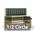 Custom Booth, half-circle banquette with 2 corners, 48" x 90" x 48"L, 36"H, wood frame, upholstered foam vertical channel (5" to 16" spacing) back, padded seat, unfinished outside back, grade 1 uph/COM