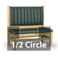 Custom Booth, half-circle banquette with 2 corners, 48" x 90" x 48"L, 48"H, wood frame, upholstered foam vertical channel (5" to 16" spacing) back, padded seat, unfinished outside back, grade 1 uph/COM