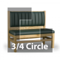 Custom Booth, three-quarter circle banquette with 3 corners, 48" x 90" x 90" x 48"L x 42"H, wood frame, upholstered foam vertical channel (5" to 16" spacing) back, padded seat, unfinished outside back, grade 2 uph