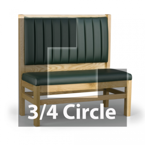 Custom Booth, three-quarter circle banquette with 3 corners, 48" x 90" x 90" x 48"L x 48"H, wood frame, upholstered foam vertical channel (5" to 16" spacing) back, padded seat, unfinished outside back, grade 1 uph/COM