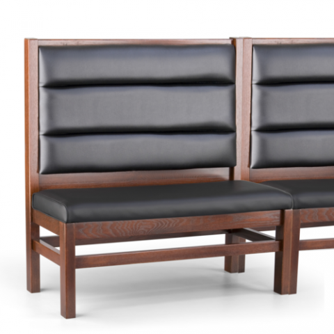 Custom Booth, banquette, 48"H, wood frame, upholstered foam horizontal channel (6" to 16" spacing) back, padded seat, unfinished outside back, grade 2 uph (priced per foot)