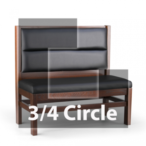 Custom Booth, three-quarter circle banquette with 3 corners, 48" x 90" x 90" x 48"L x 42"H, wood frame, upholstered foam horizontal channel (6" to 16" spacing) back, padded seat, unfinished outside back, grade 2 uph
