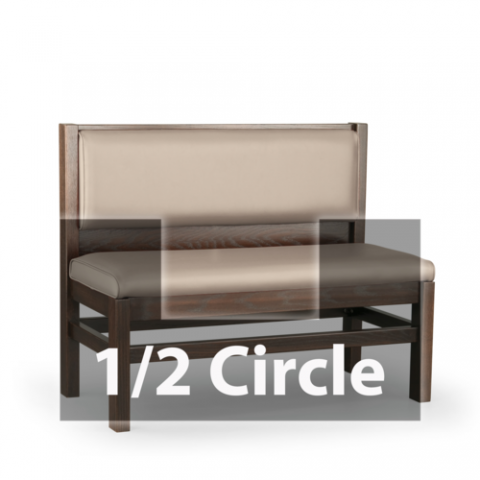 Custom Booth, half-circle banquette with 2 corners, 48" x 90" x 48"L, 36"H, wood frame, floating padded plain back, padded seat, finished outside back, grade 2 uph