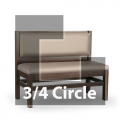 Custom Booth, three-quarter circle banquette with 3 corners, 48" x 90" x 90" x 48"L x 36"H, wood frame, floating padded plain back, padded seat, finished outside back, grade 1 uph/COM