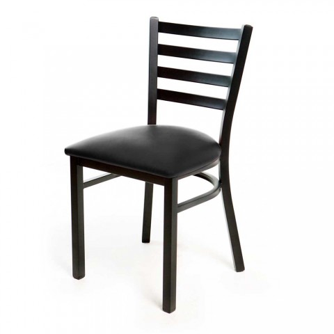 Side Chair, ladder back, upholstered padded seat, welded 18 gauge steel frame with textured black powder coat finish, black nylon glides, 100,000 DR black vinyl, Quick Ship (seat shipped loose)