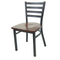 Side Chair, ladder back, solid wood seat, welded 18 gauge steel frame with textured black powder coat finish, black nylon glides