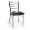 Side Chair, ladder back, upholstered padded seat, welded 18 gauge steel frame with powder coat silver/chrome finish #48, white nylon glides, upholstery to be specified