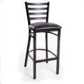 Bar Stool, ladder back, upholstered padded seat, welded 18 gauge steel frame with textured black powder coat finish, foot rest, black nylon glides, 100,000 DR black vinyl, Quick Ship (seat shipped loose)