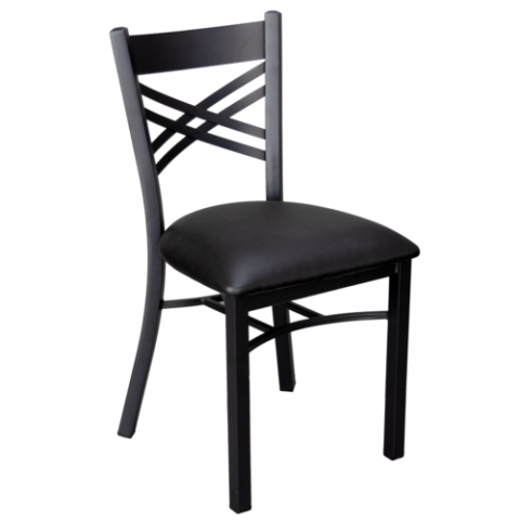 Side Chair, X-back, upholstered padded seat, welded 18 gauge steel frame with textured black powder coat finish, black nylon glides, upholstery to be specified