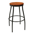 Industrial Collection Bar Stool, backless, wood seat, metal frame with textured black powder coat finish, footrest, black nylon glides, Quick Ship