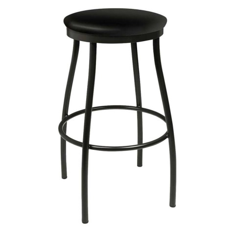 Industrial Collection Bar Stool, backless, upholstered padded seat, metal frame with textured black powder coat finish, footrest, black nylon glides, grade 1 uph.