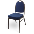Banquet Collection Stacking Side Chair, upholstered dual padded dome back with hidden fasteners, upholstered 2-1/2" padded seat, welded 19 gauge rust protected steel frame, black insert-style nylon glides, grade 1 uph.