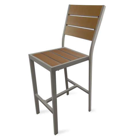 Barstool, outdoor use, tan perma-wood™ back & seat, welded aluminum frame with champagne powder coat finish, weather-proof, natural pressed faux teak