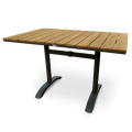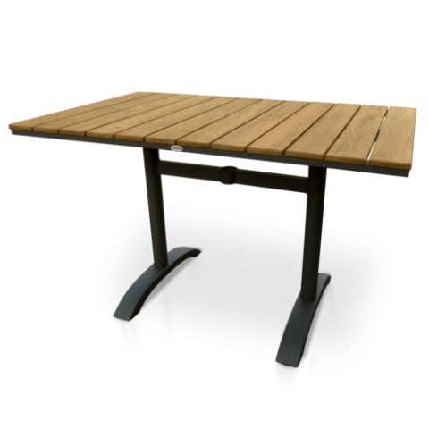 Table, rectangular, 30" x 48", dining height, outdoor use, natural grain teak oil perma-wood™ top, welded aluminum H frame with dark gray powder coat finish, weather-proof, with 2" umbrella hole grommet & cap, tan faux teak