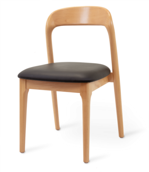 Wooden Side Chair, contour back, horse-collar style back rest. padded contour seat, german beech, tongue & groove hardwood construction, Quickship