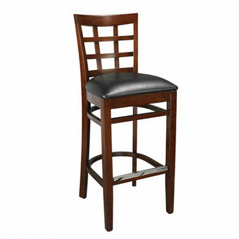 Bar Stool, window back, upholstered 2-1/2" padded seat, German beech wood frame, foot rest, upholstery to be specified