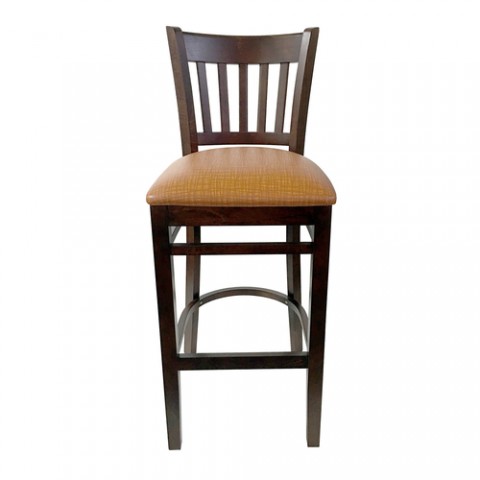 Bar Stool, floating slat back, upholstered 2-1/2" padded seat, German beech wood frame, foot rest, non-marring nylon glides, upholstery to be specified