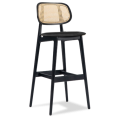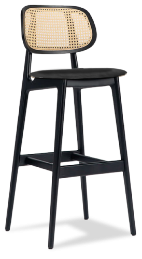Bar Stool, natural cane floating back, solid wood frame, contour padded seat, upholstered cushion, grade 3 uph.